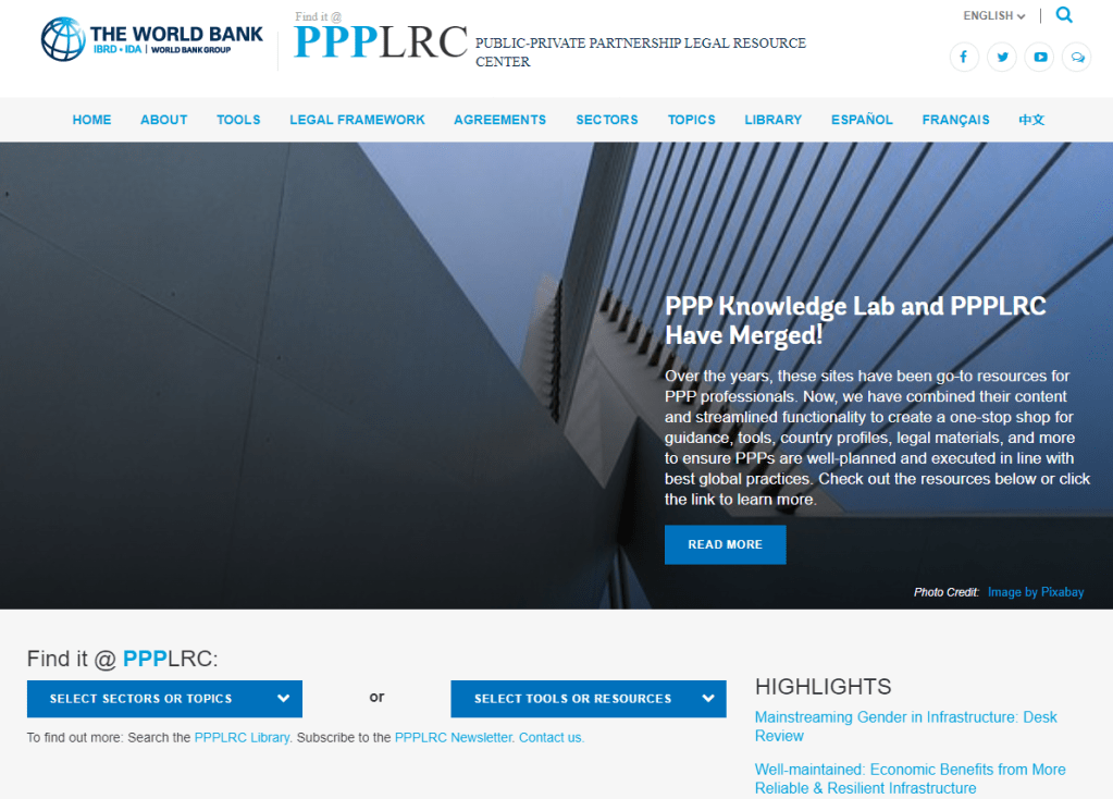 The World Bank, Infrastructure Finance Group, similarly maintains a resoucres bases for PPPs , which is of extreme high value. https://ppi.worldbank.org/en/ppi and https://ppp.worldbank.org/public-private-partnership/
