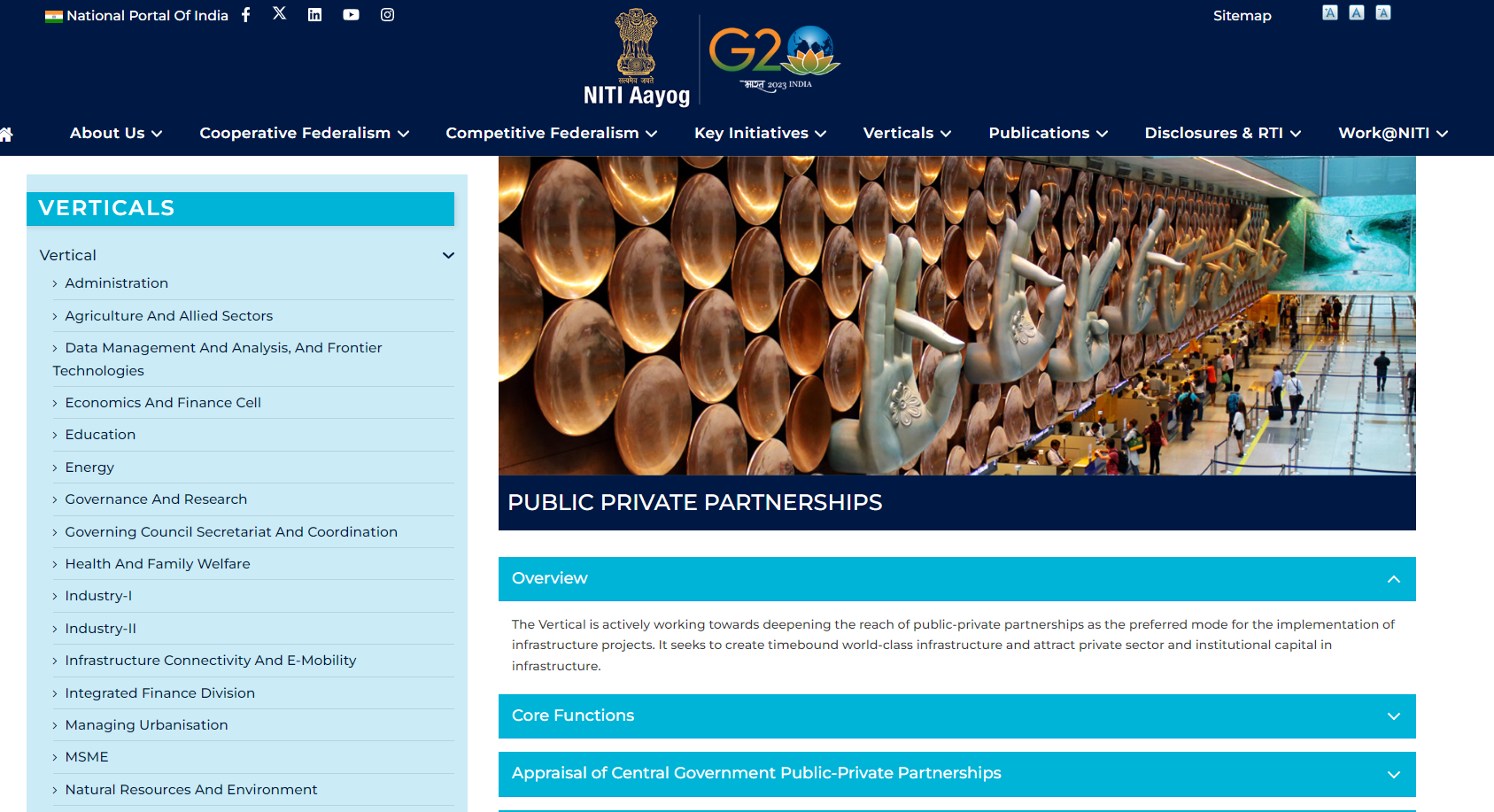 The Niti Ayog, India’s highesy policy making body, also maintains a page on PPPs. https://www.niti.gov.in/verticals/ppp